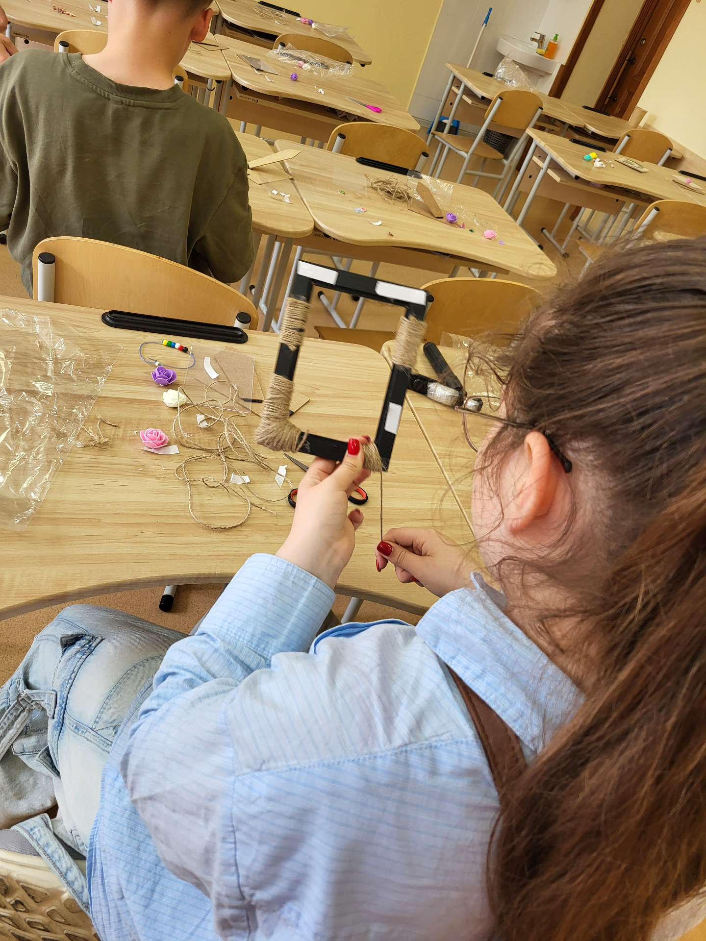 За 1 годину діти самостійно прикрашають рамочку нитками,потім декорують на власний розсуд.